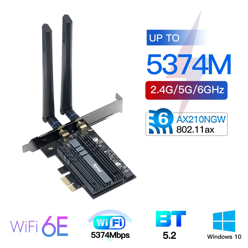 Трехдиапазонный адаптер WiFi6e AXE3000 RGB PCI-E, 5374 Мбитс, AX210NGW, Bluetooth BT 5,2, 802.11AX, для Win10-64 бит PCIe-карты для настольного компьютера