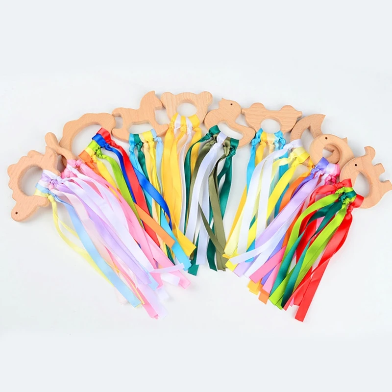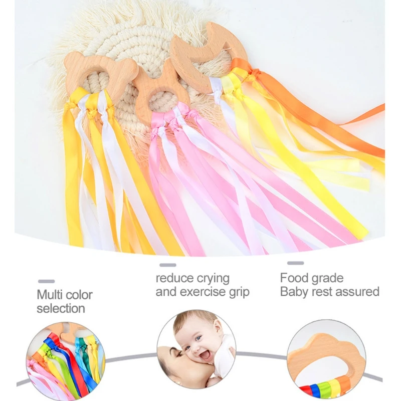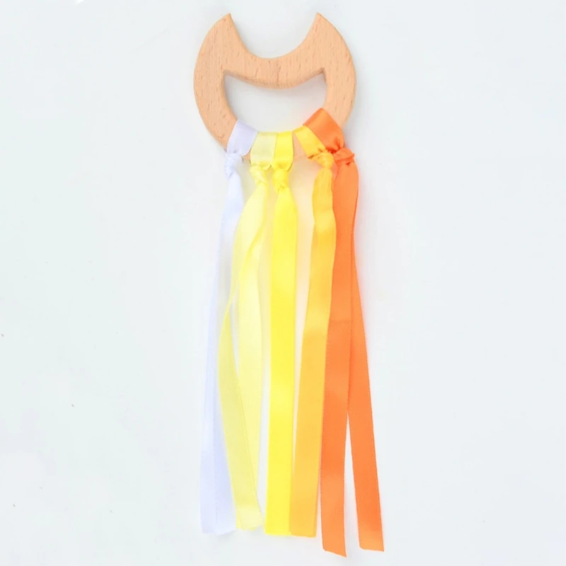 OOTDTY креативное кольцо из натурального дерева, прорезыватель, радужная лента, сенсорные игрушки, Прорезыватель для зубов, пустышка для ухода за ребенком, подарок для новорожденного