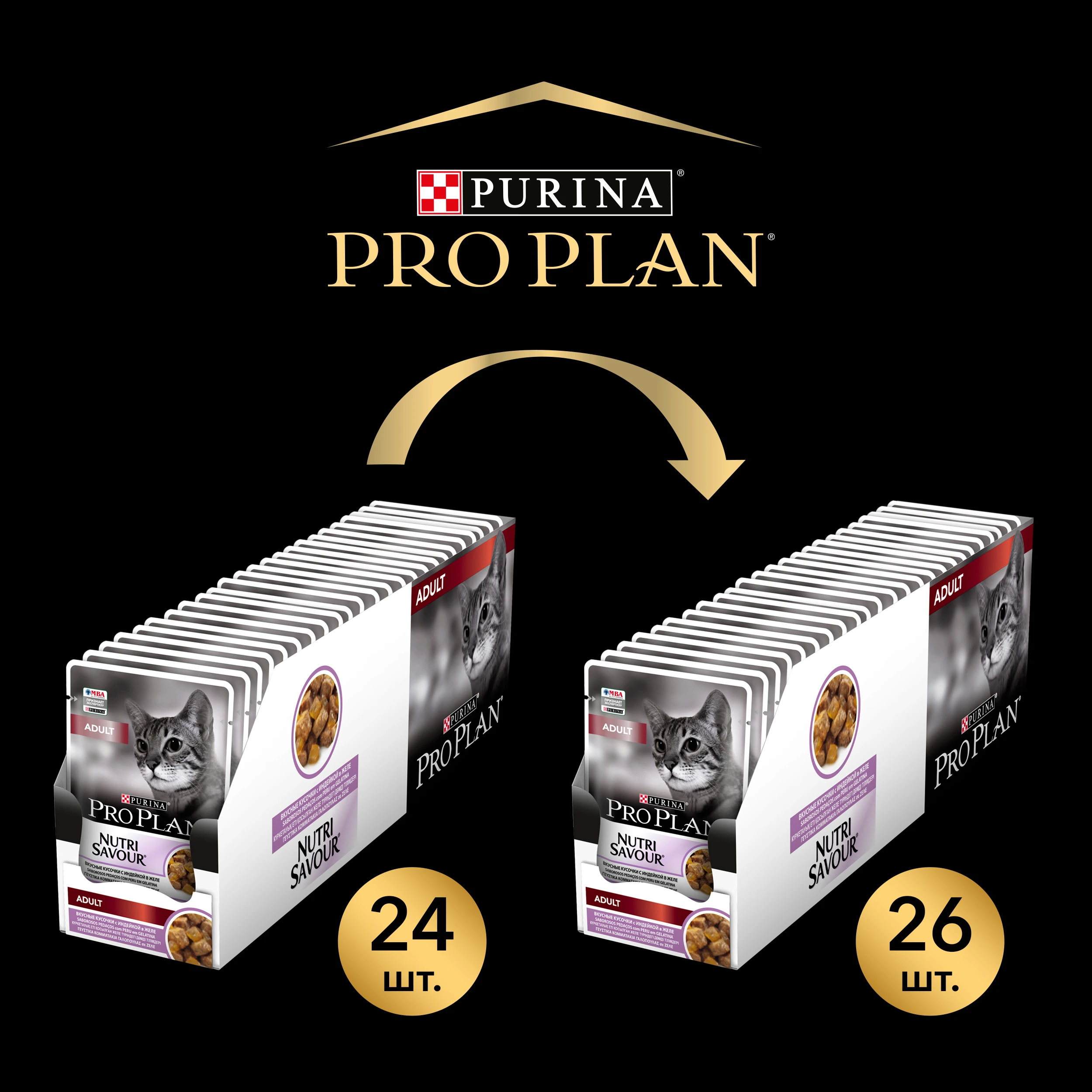 Влажный корм Pro Plan Nutri Savour Adult для взрослых кошек, кусочки с индейкой в желе, Пауч, 85 г*26 шт
