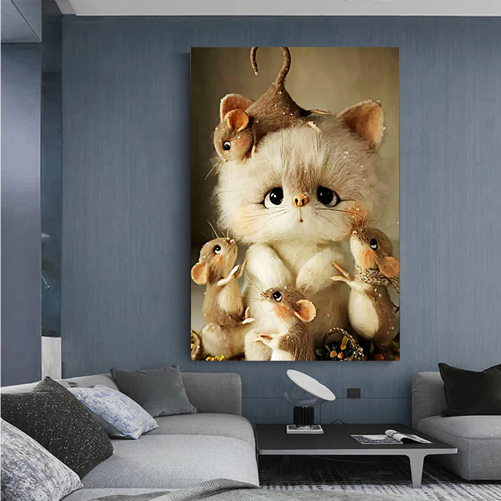 Алмазная живопись Кот и мышь, сделай сам, мультяшный Кот, полная Алмазная вышивка, стразы, мозаика-художник, украшение для дома