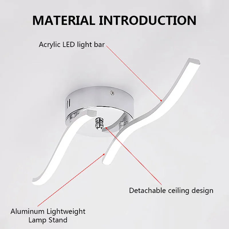 Потолочный светодиодный светильник, изогнутая алюминиевая лампа для...