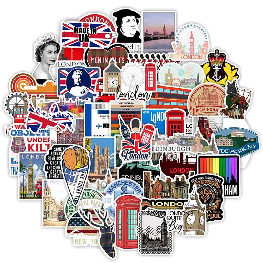 103050 шт. британский флаг Pzi, ретро-наклейка с культурным логотипом, канцелярские товары для багажа, наклейка для ноутбука, компьютера, оптовая продажа