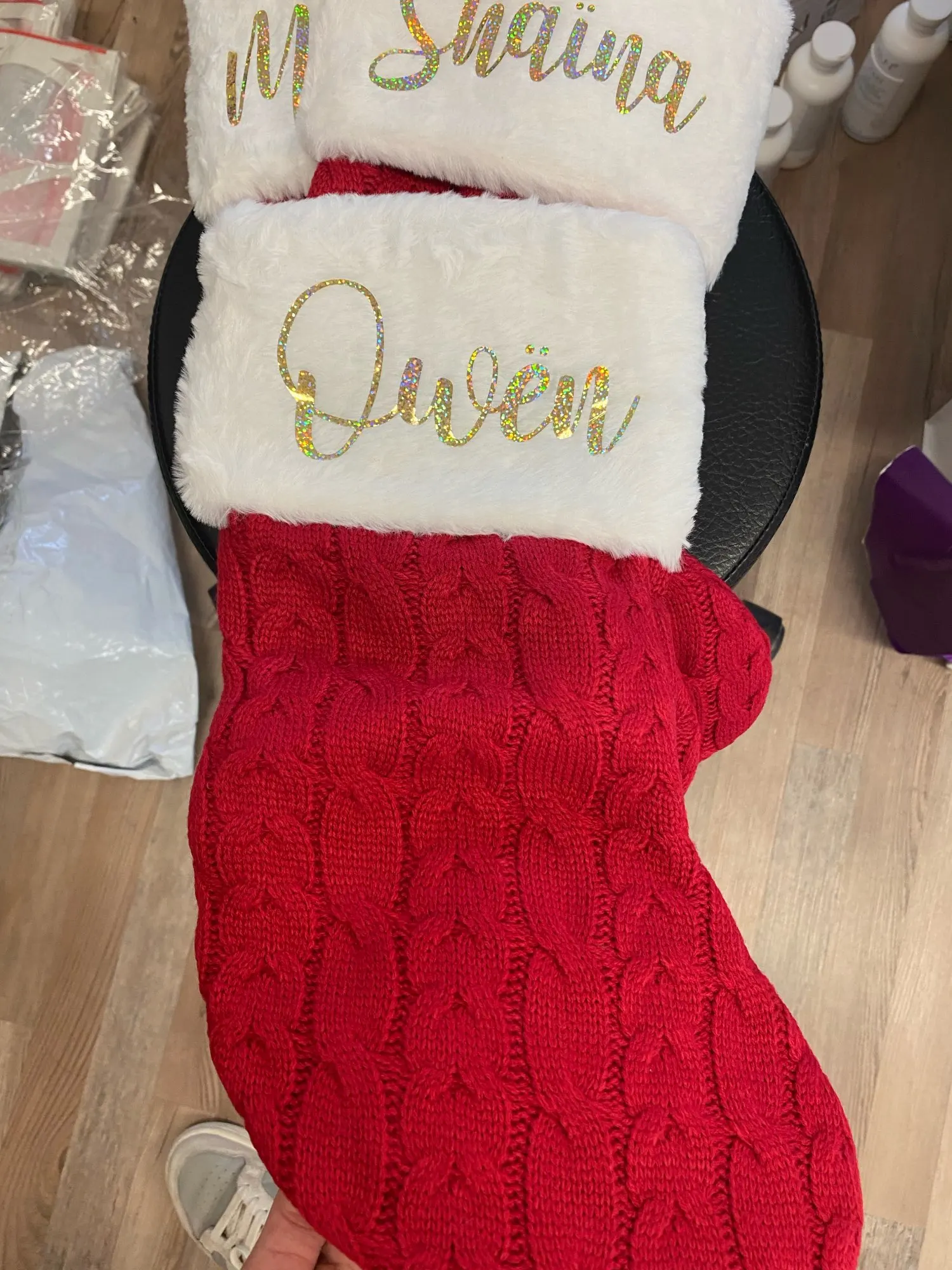 Персонализированные рождественские чулки, искусственные рождественские чулки, вязаные чулки, вязаные чулки с помпоном, украшение для рождественской елки