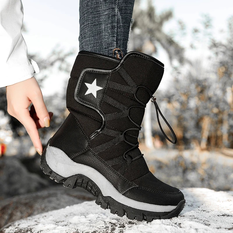 Женские ботинки Xiaomi, зимние водонепроницаемые ботинки с хлопковой подкладкой, теплые, уличные, черные, размер 43