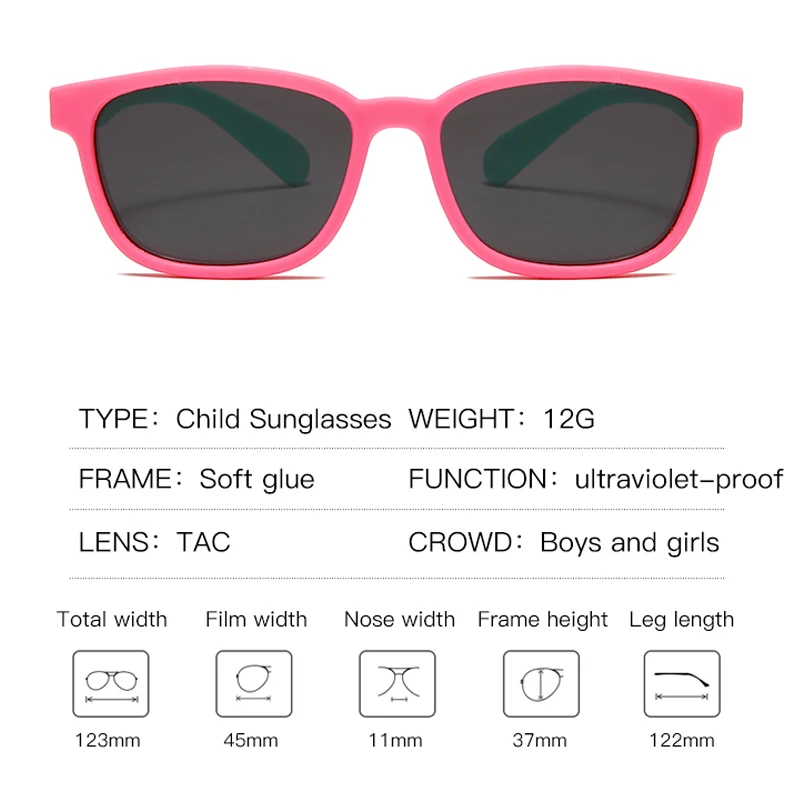Детские резиновые солнцезащитные очки Polaroid TR90, гибкие поляризационные очки с сумочкой в форме сердца для маленьких девочек, черные розовые