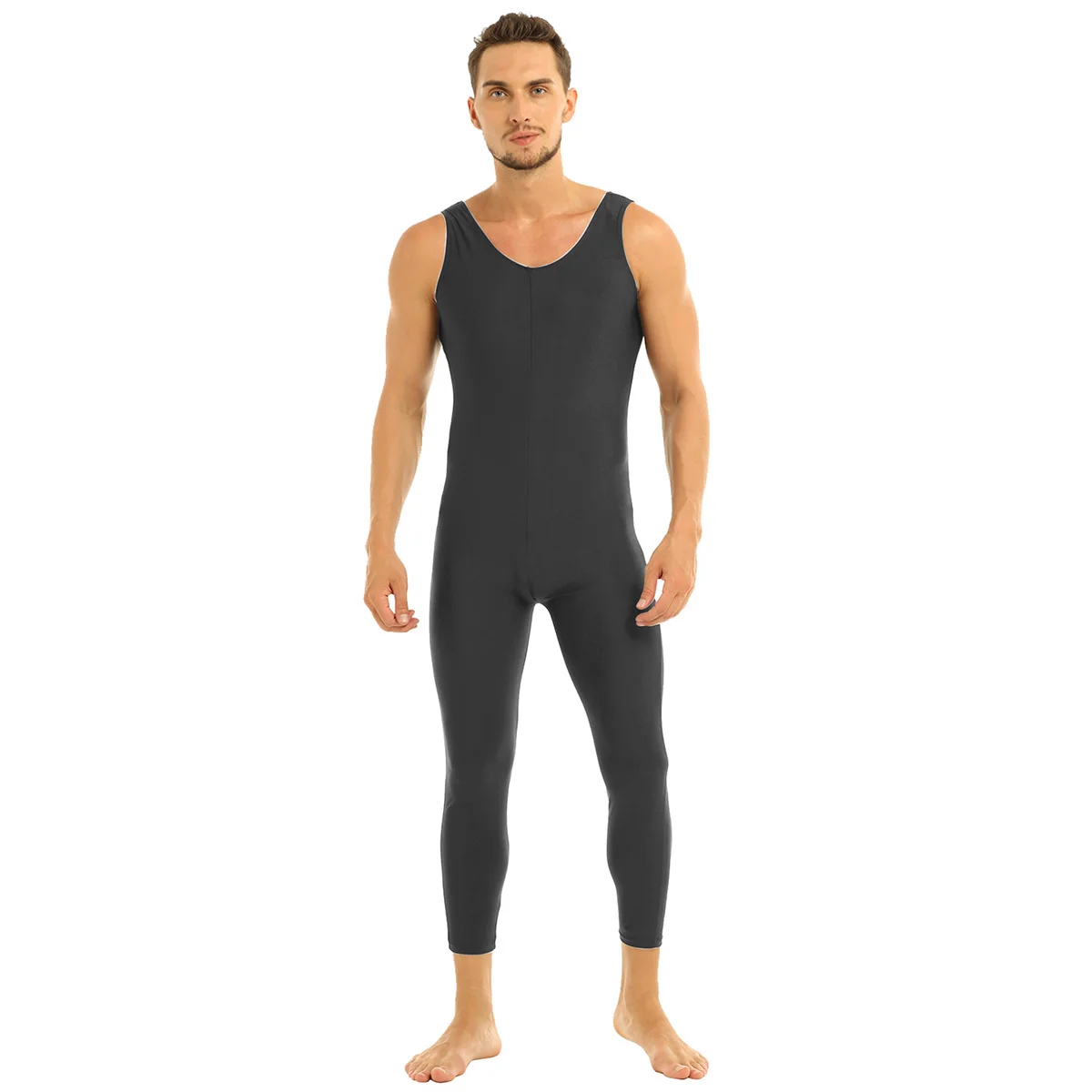Комбинезон мужской сплошной с глубоким вырезом, облегающий однотонный жилет без рукавов, Одежда для танцев, для взрослых