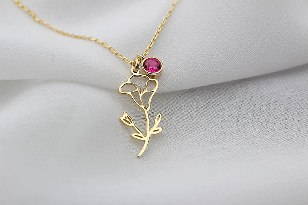 Новый заказной рождения луна цветок ожерелье персонализированные камень по дню рождения ожерелье из нержавеющей стали кулон ожерелье леди подарок на день рождения