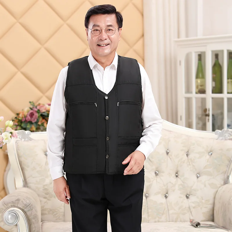 Новое мужское черное флисовое нижнее белье, зимняя верхняя одежда без рукавов, теплая флисовая подкладка, нижнее белье большого размера для пожилых людей, теплая