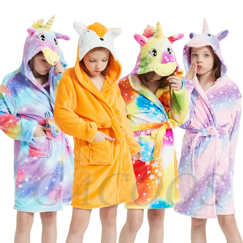 Детский халат, детский халат для душа, пижамы для девочек, детский халат, банный халат с единорогом для малышей, зимний мультяшный костюм для подростков