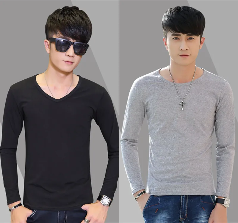 Футболка Новинка весна-осень 2021 модная мужская футболка с длинным рукавом облегающая однотонная мужская длинная футболка с круглым вырезом повседневные футболки