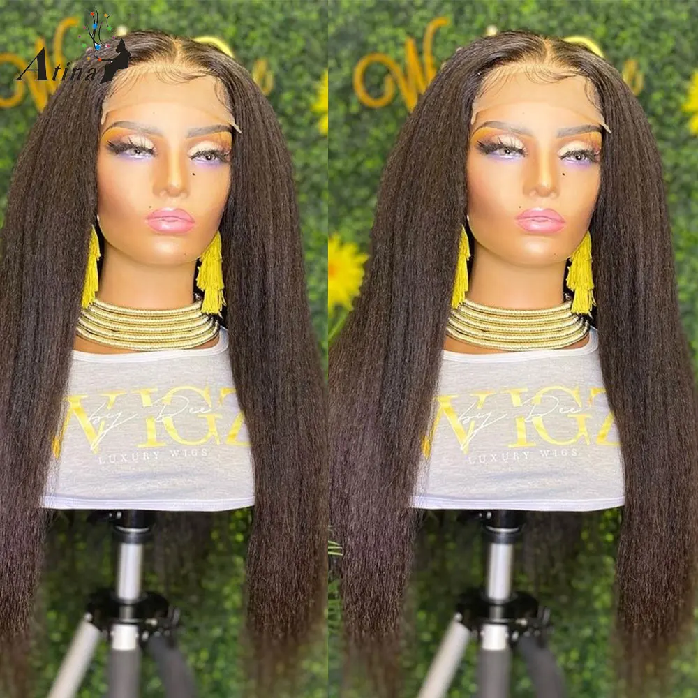Парик из натуральных кудрявых прямых волос для чернокожих женщин, HD 13x 6, 360, без клея, предварительно выщипанные, бразильские