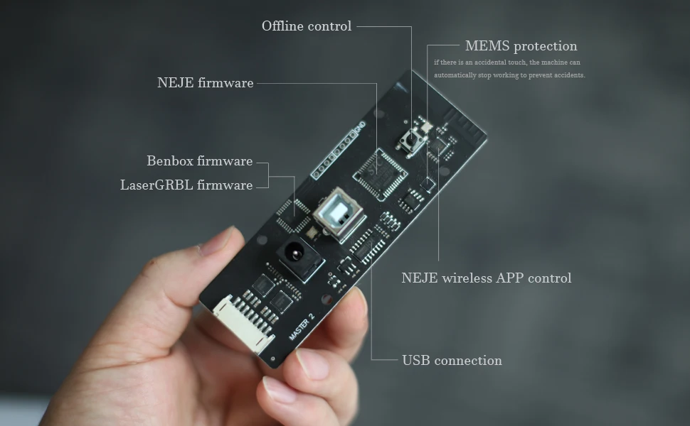 Удобнее. Автономное и беспроводное управление через приложение. NEJE сканер беспроводной передачи. Облачная галерея и онлайн Gcode упрощают создание.