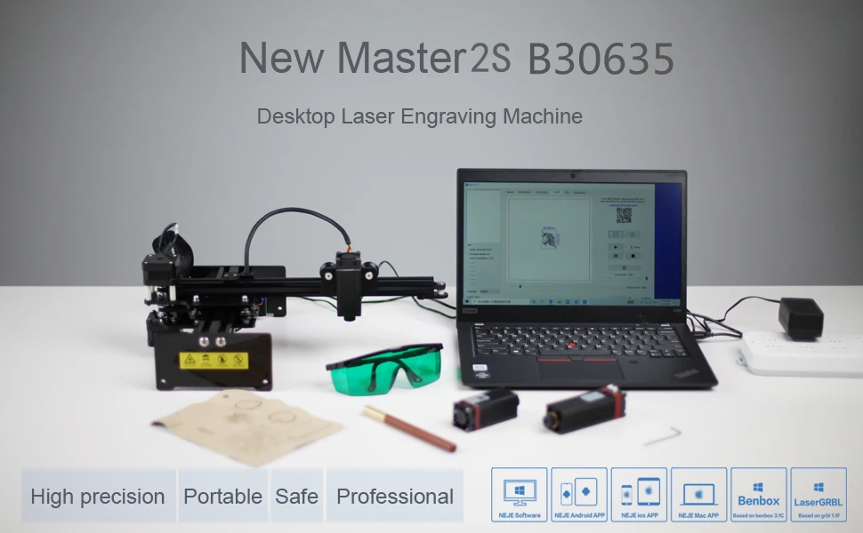 Профессиональное программное обеспечение с ЧПУ: Benbox , LaserGRBL. 170x170 мм Диапазон гравировки. Операционная система: windows 7/10 / android / iOS / macOS. Формат изображения: BMP / PNG / JPG / NC / DXF