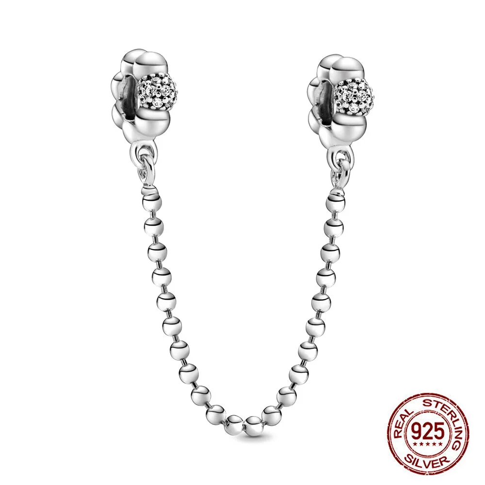 Новый 925 стерлингового серебра полированный & паве бисера прокладка предохранительный цепной зажим Шарм Подходит оригинальный Pandora браслет ожерелье DIY ювелирные изделия