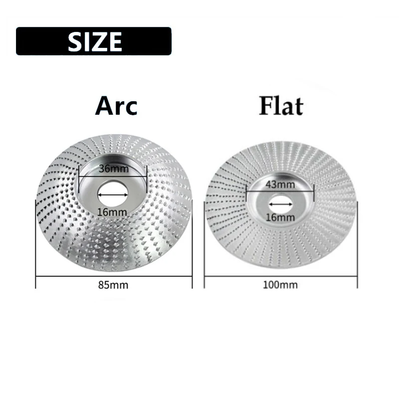 Использование и уходПринадлежности для рукоделия: ДеревообработкаТип: абразивный дискНомер модели: резьба, вращающийся инструментМатериал: Карбид вольфрамаФорма: дуга/плоскаяДиаметр: 85 мм/3,34 дюйма (дуга)100 мм/3,93 дюйма (плоский/конический/круглый)Диаметр отверстия: 16 мм/0,62 дюйма (пожалуйста, проверьте совместимость с вашей шлифовальной машиной)Цвет: серебристыйРекомендуемый Макс. Об/мин: 15000 об/мин Особенности:1. Карбид вольфрама покрытия состоят из сотни чрезвычайно острых зубов, которые быстро удаляют запас и превосходят сотни наждачных бумажных колодок.2. Подходит для быстрого удаления и формирования, особенно для выпуклых и вогнутых зон.3. Легко устанавливается на угловую шлифовальную машину, подходит для всех марок шлифовальной машины.4. Легко и быстро удаляет различные материалы, экономит время и усилия.5. Новый дизайн формы, лучше для резьбы.6. Применяется только для обработки дерева или пластика, например, для удаления заусенцев, обрезки, полировки и так далее. Не для использования на металлических материалах