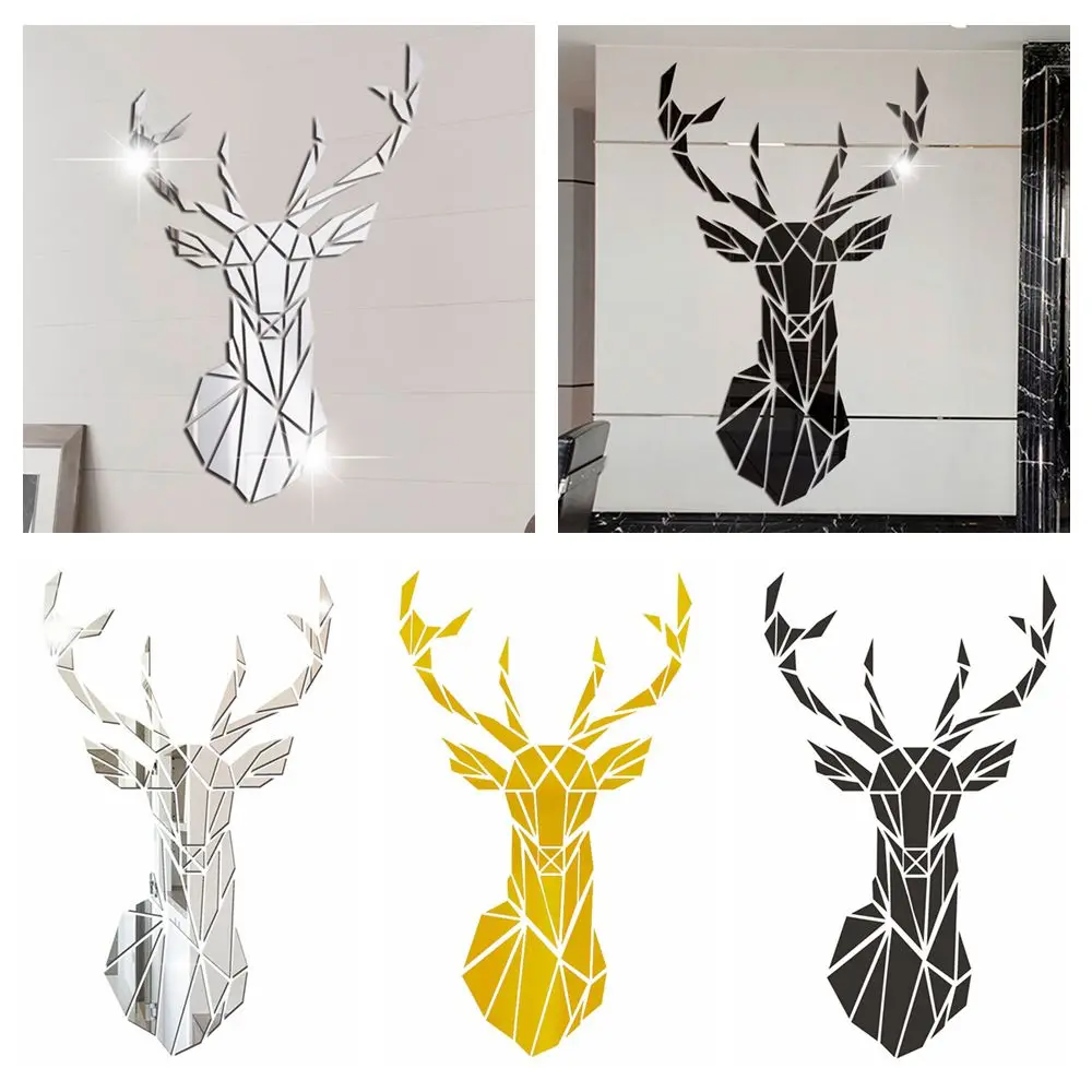 Самодельные 3D наклейки с головой оленя в современном стиле, зеркальные наклейки с поверхностью, настенные художественные обои, самоклеящиеся домашние приборы для гостиной