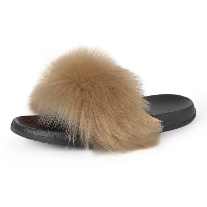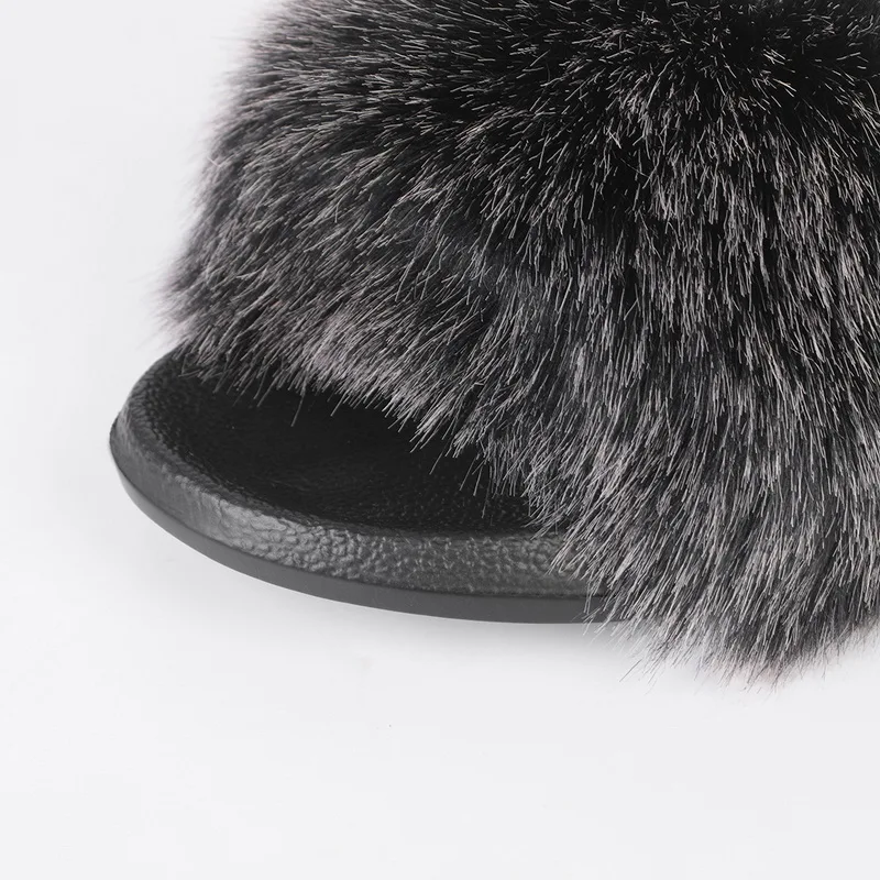Женские меховые шлепанцы, Плюшевые Пушистые сандалии с лисьим мехом...