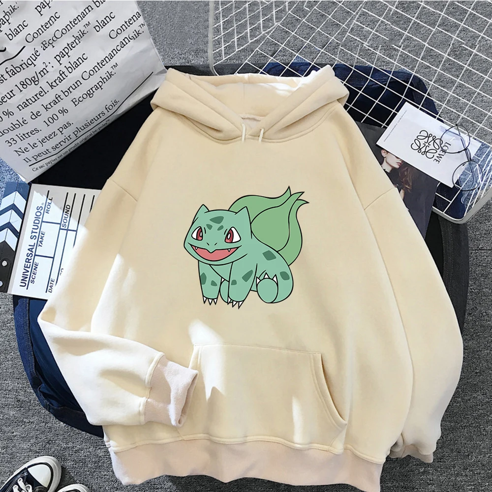 Новинка женские толстовки Покемон Бульбазавр аниме Kawaii Pikachu мультфильм повседневная одежда теплая Женская Подростковая пуловеры с капюшоном Свитшот Топ
