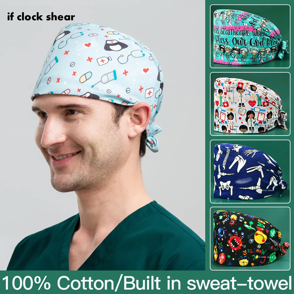 Впитывающая пот Модная хлопковая шапка с принтом для медсестер шапк...