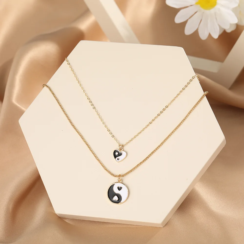 Женское ожерелье с подвеской в стиле панк, Тай-Чи, 2 шт., металлическое, золотистое, многослойное, E-Girl, 2021, модные украшения