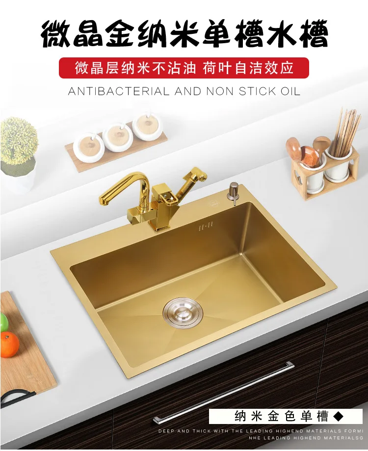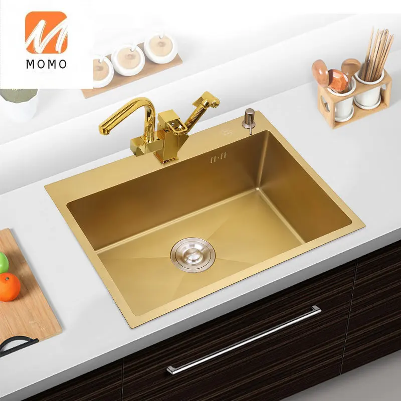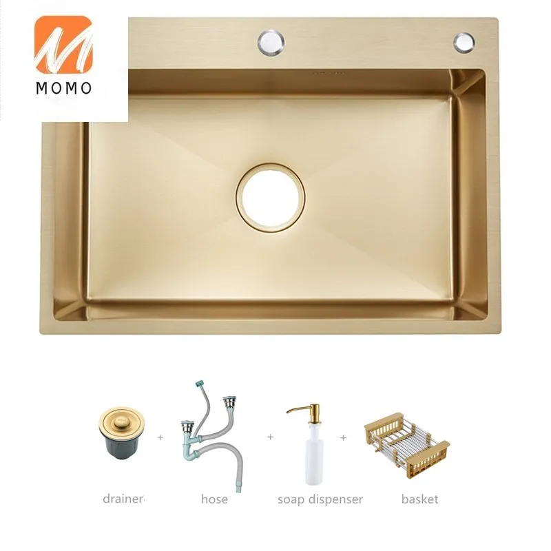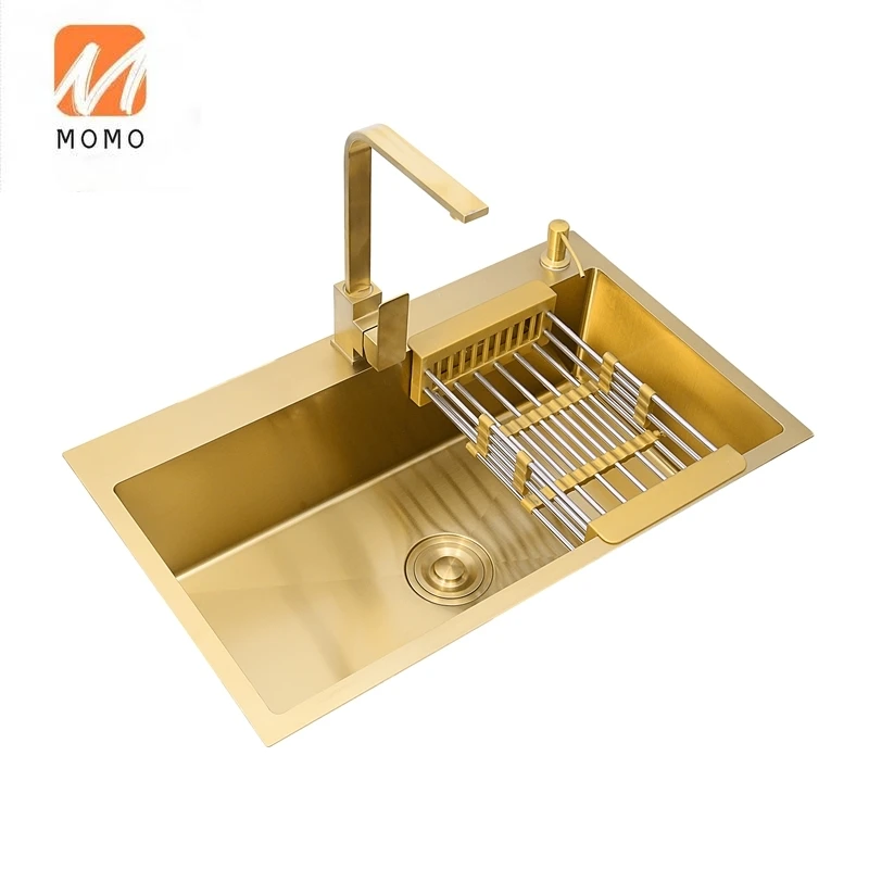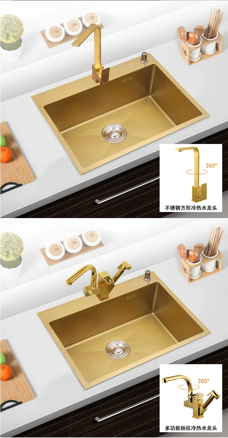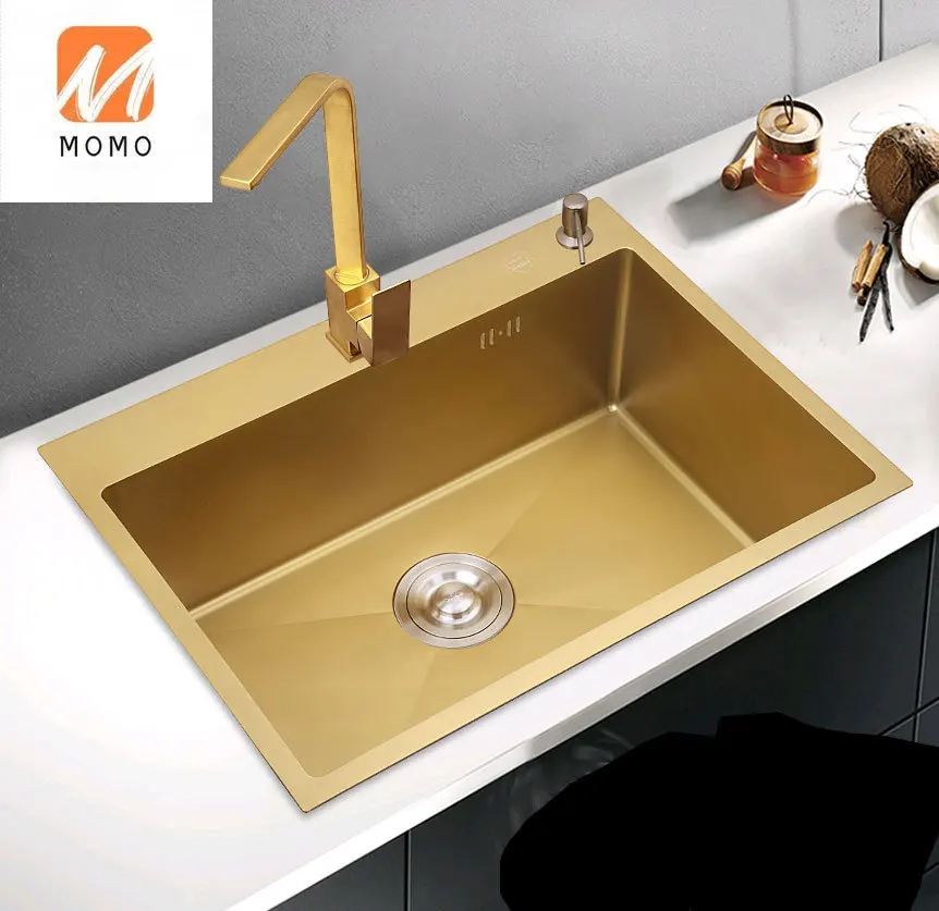Большая емкость матовая Золотая одинарная раковина кухонная раковина SUS304 кухонная раковина из нержавеющей стали кухонная раковина с сетчатым фильтром