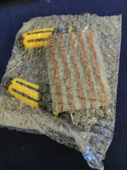 Дополнительные резиновые ремонтные полоски 5 шт., для набора ремонта авто-шин (для хранения в автомобиле), пришли раньше, чем сам набор, за 20 дней в Киев. Товар доставлен в полиэтиленовом воздушном пакете в целом состоянии. Брал за 0,92$. Продавец положил 10шт. (5-ть шт. в подарок), хотя они все суховатые. Продавца и товар рекомендую!
