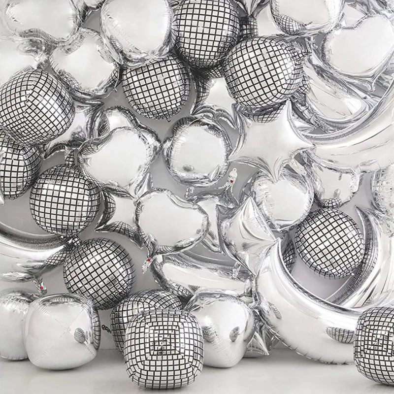 Серебряный Гелиевый шар для дискотеки, Танцевальная вечеринка, декоративные металлические шары, для взрослых, украшения для дня рождения, свадьбы, космической вечеринки