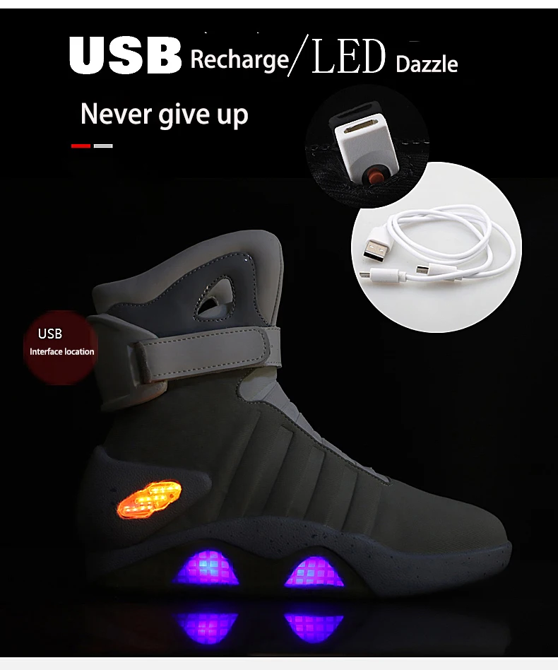 Мужские ботинки Back To The Future, светодиодная обувь с USB-зарядкой для мужчин и женщин, модная повседневная обувь, светящиеся ботинки для пустыни для мужчин, 2021