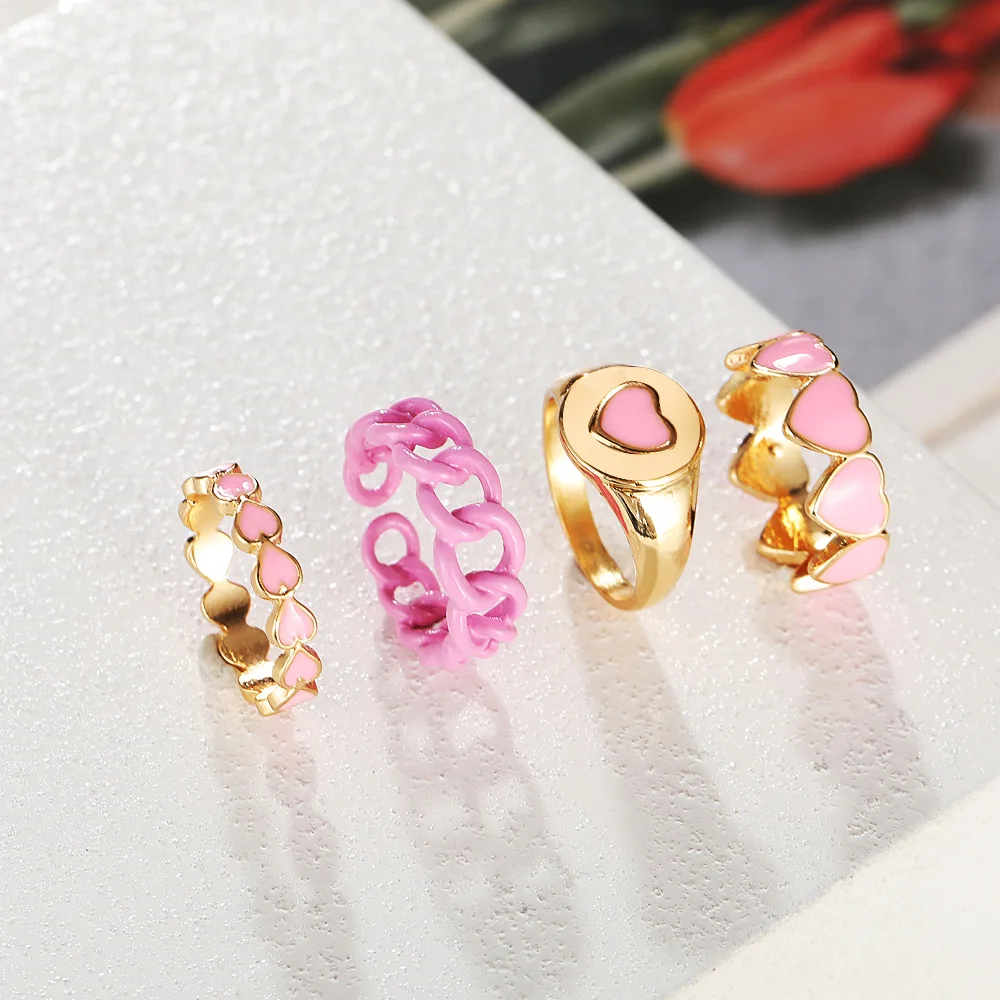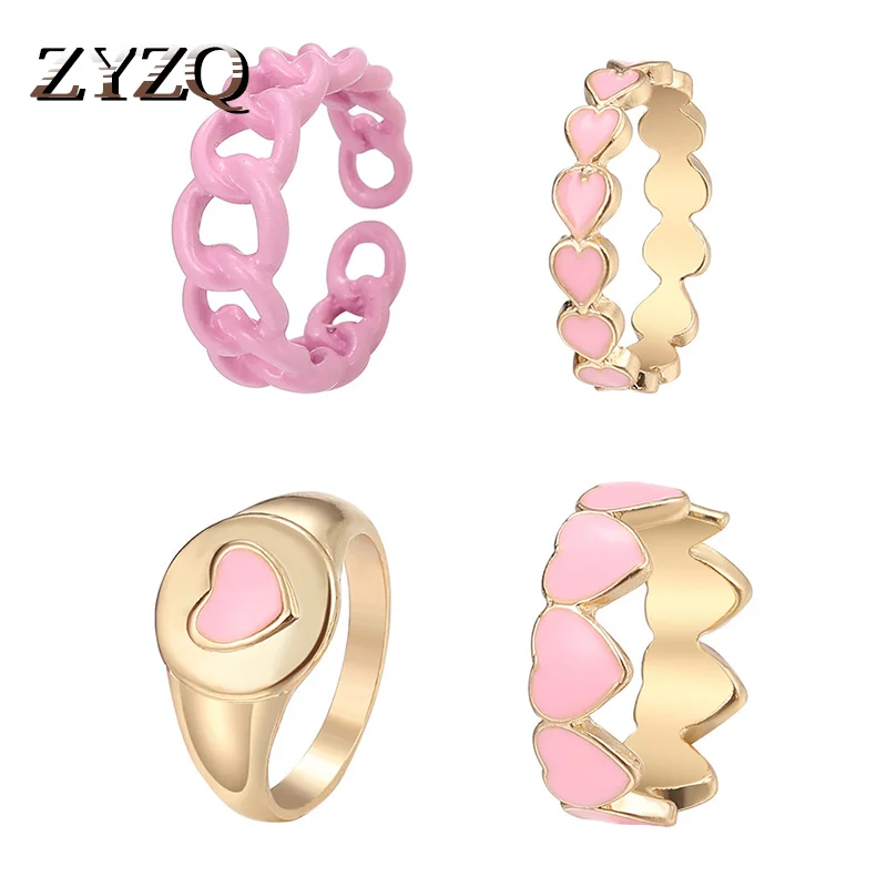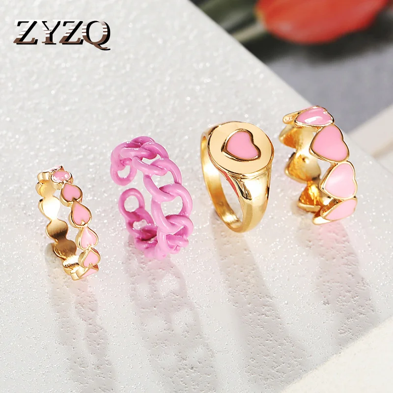 ZYZQ ins Новинка 4 шт. милое розовое любовное кольцо креативное милое простое кольцо для женщин и девочек модное индивидуальное Подарочное ювелирное изделие 2021