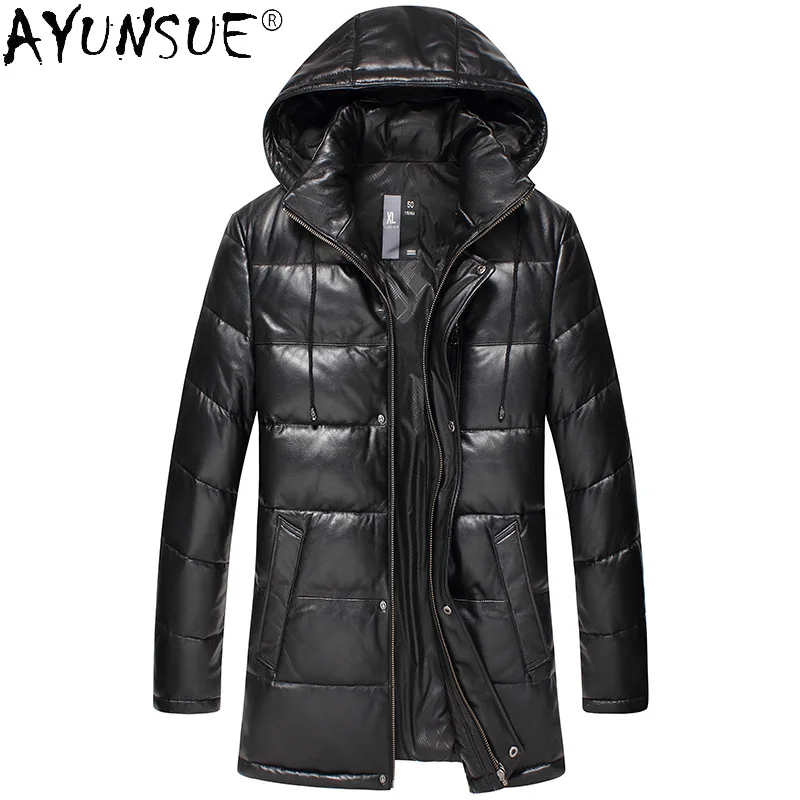 Мужская кожаная куртка AYUNSUE, с натуральным мехом, с капюшоном, SQQ