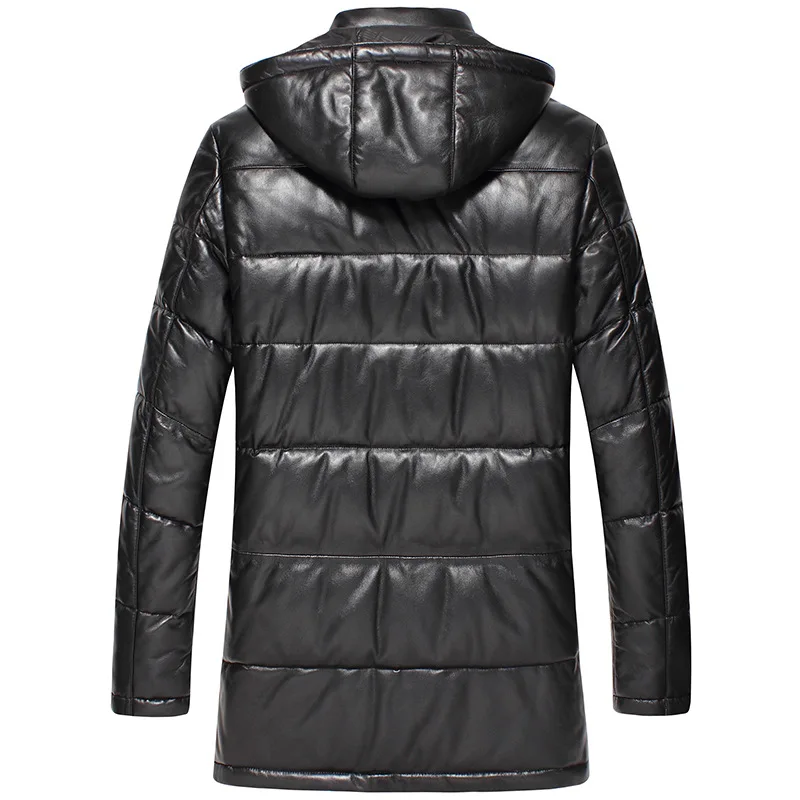 Мужской длинный пуховик из натуральной кожи, со съемным капюшоном, ...