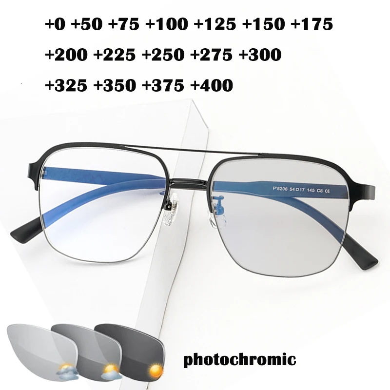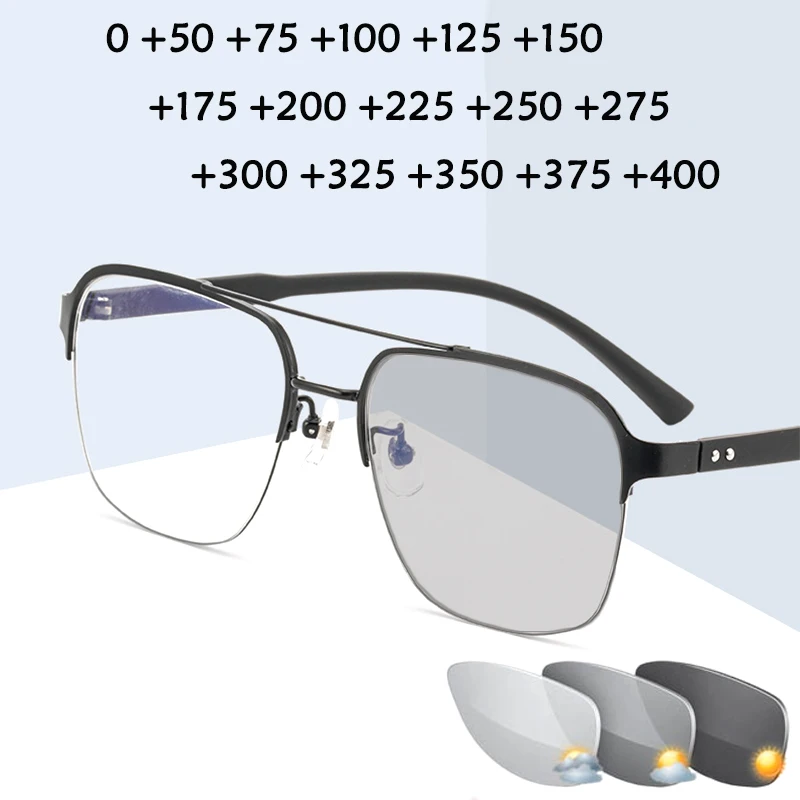 Ультра-светильник, очки для чтения с переходом, фотохромные полуобода, уличные солнцезащитные очки с обесцвечиванием, пресбиопические очки для мужчин и женщин + 125 175 225