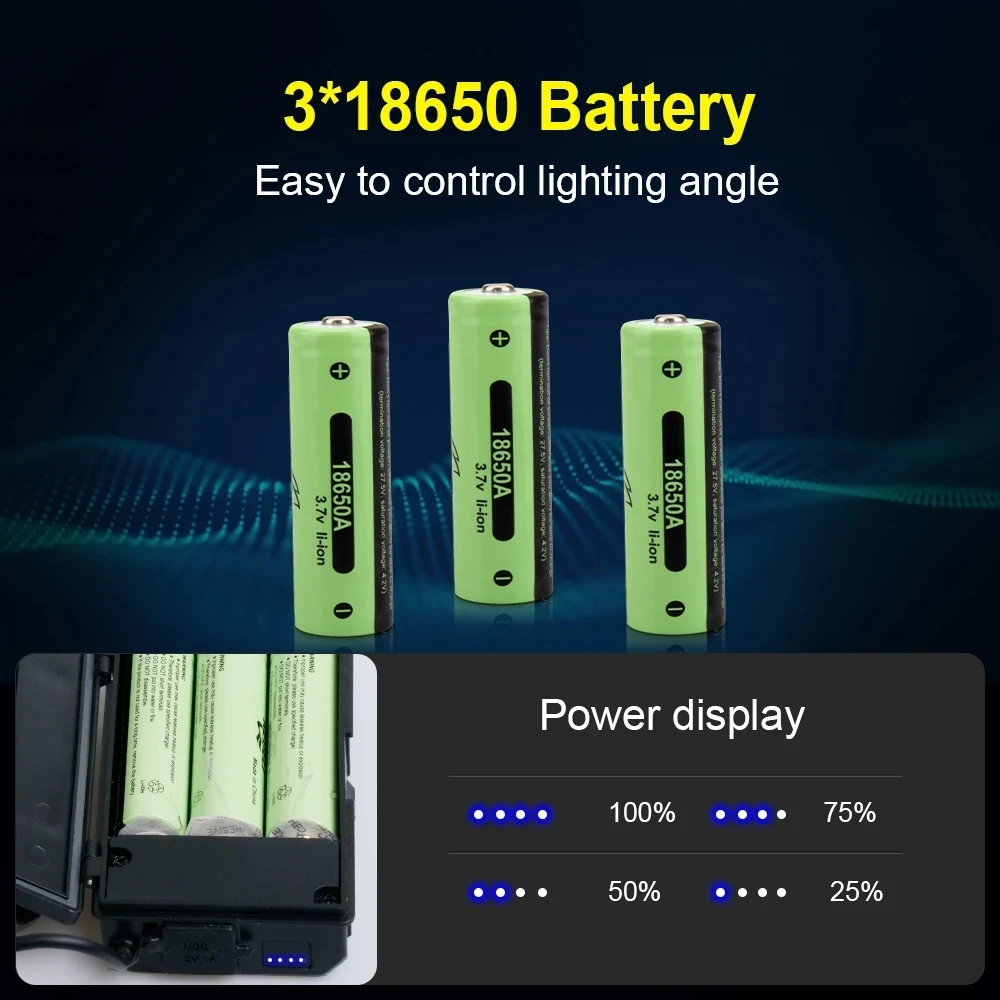 Батарея отсек: 2 режима (красный светильник-красный светильник свет, мигающий свет)• Срок службы: 100000 часов• Цвет: черный• Излучаемый Цвет: белый светильник• Линзы: выпуклая линза• Материал корпуса: прочный авиационный алюминий• Батарея: перезаряжаемая батарея 3*18650Зарядное устройство:• Вход: AC110-220V 47-63 Гц• Выход: 3,7 V; 1AБатарея• Качество: 3 шт.• Материал: литий-ионный аккумулятор• Напряжение: 3,7 V