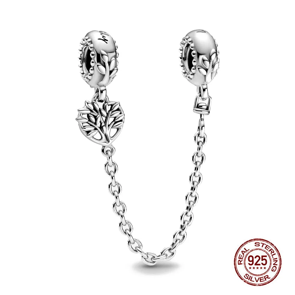 Новинка, серебро 925 пробы, сердце, семейное дерево, безопасная цепочка, шарм, подходит для оригинального браслета Pandora, ожерелье, сделай сам, Женские Ювелирные аксессуары