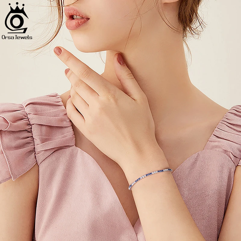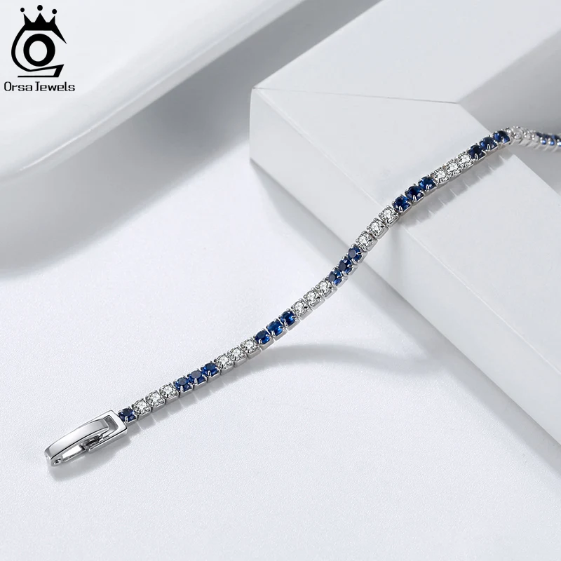 ORSA JEWELS 925 Стерлинговое серебро синий и прозрачный хрустальный теннисный браслет для женщин и мужчин кубический цирконий вечерние хип-хоп ювелирные изделия SB117
