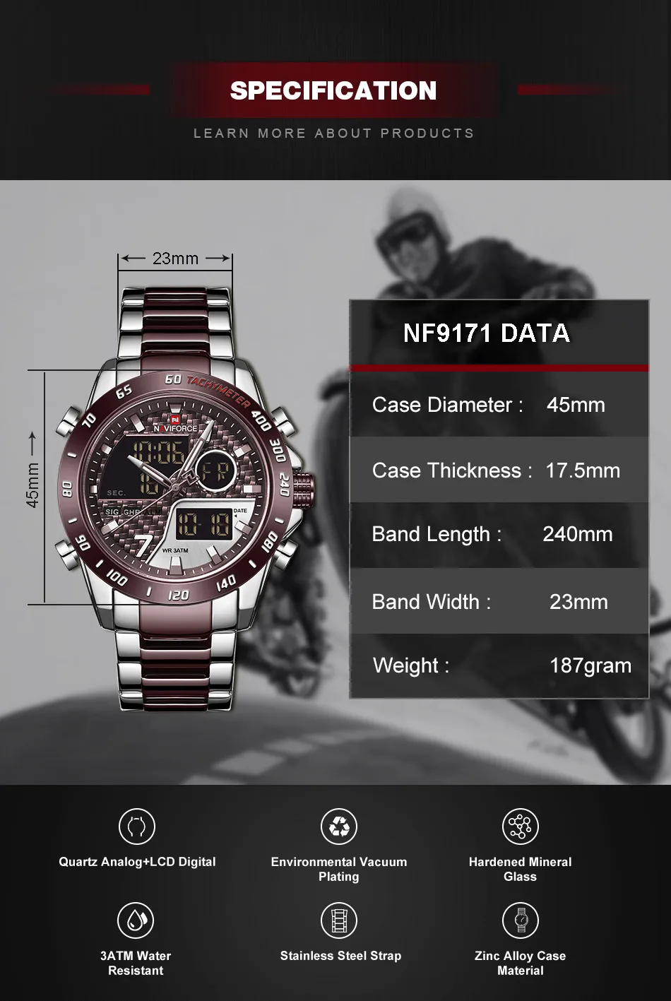 Часы NAVIFORCE мужские, военные, цифровые, спортивные, водонепроницаемые, из нержавеющей стали