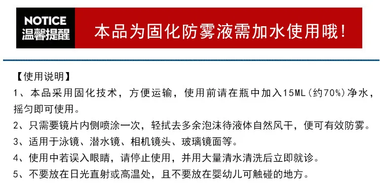 Примечание: Этот продукт представляет собой твердую жидкость для защиты от запотевания, которую можно использовать только после добавления воды.
