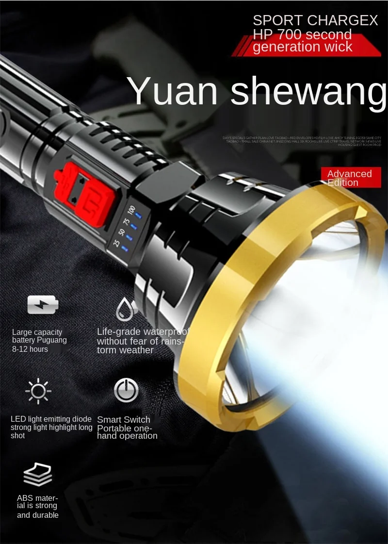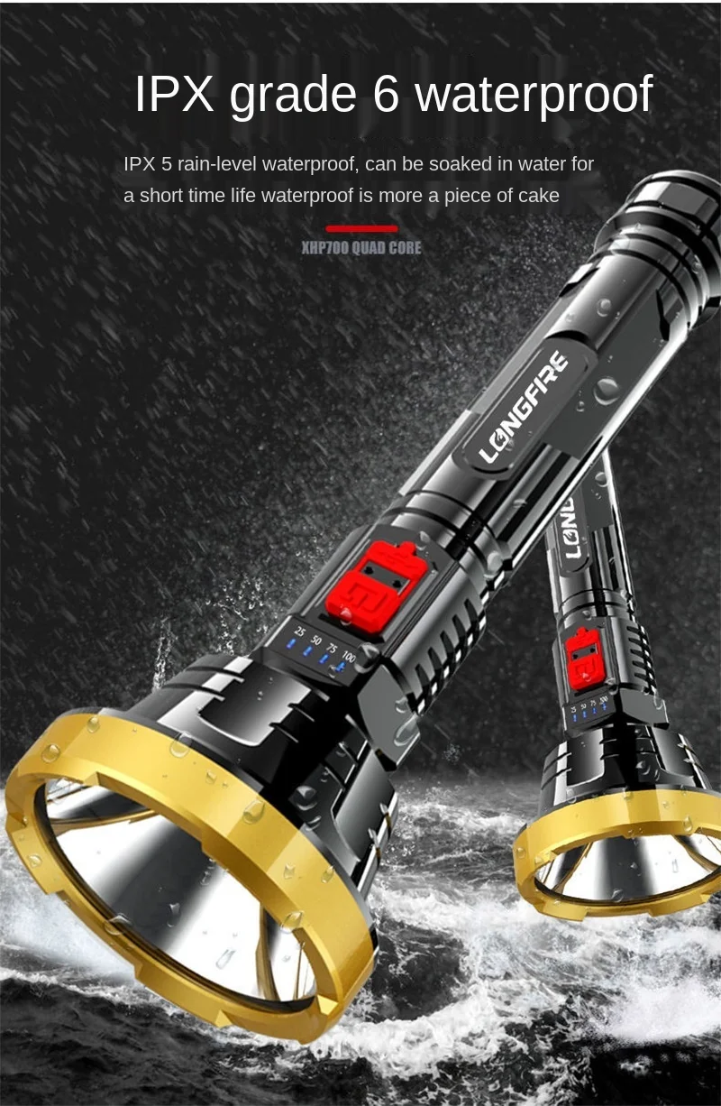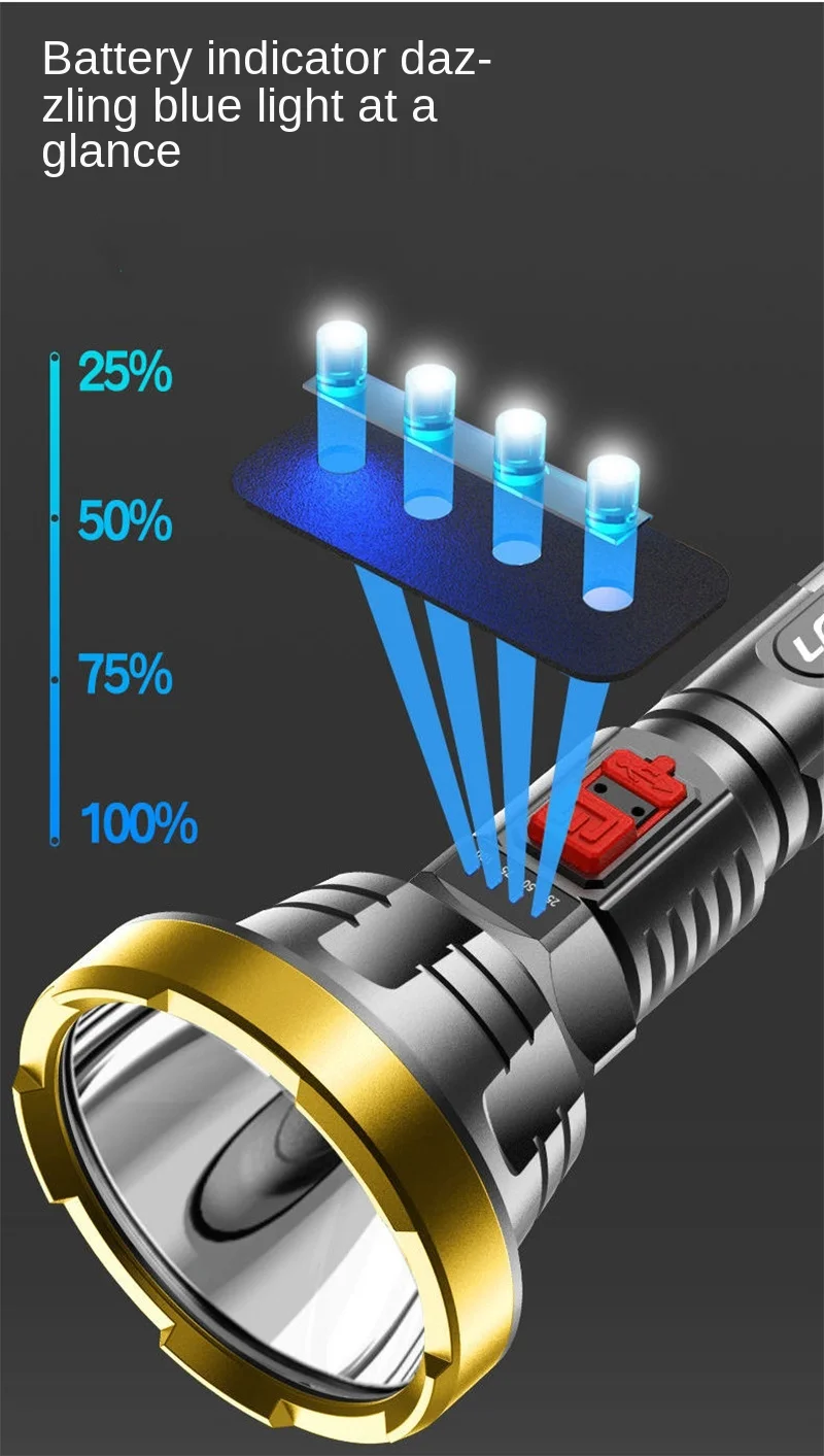 Светодиодный фонарик, мощный яркий супер-светильник, светодиодный фонарик высокой мощности, перезаряжаемый от USB, водонепроницаемый Ультраяркий фонарь