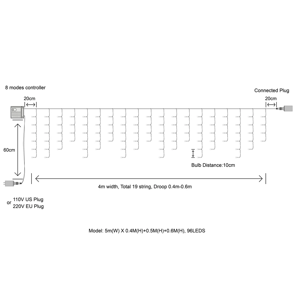 Рождественский светильник 5 м Водонепроницаемый открытый Droop 0,4-0,6 м Светодиодные Шторы гирлянда сосульки светильник s Garden Mall карнизы декоративный светильник s