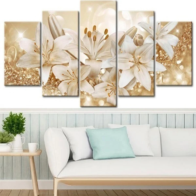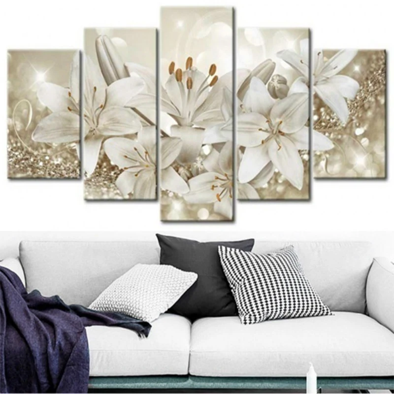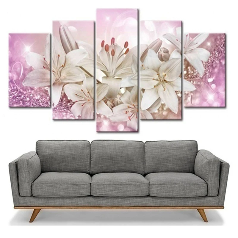 Настенная живопись с лилиями, 5 шт., плакат с красивыми цветами, украшение для гостиной, художественные принты, настенные картины, домашний декор
