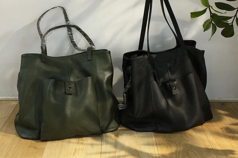 Сумка-тоут женская из натуральной кожи, повседневный саквояж на пле...
