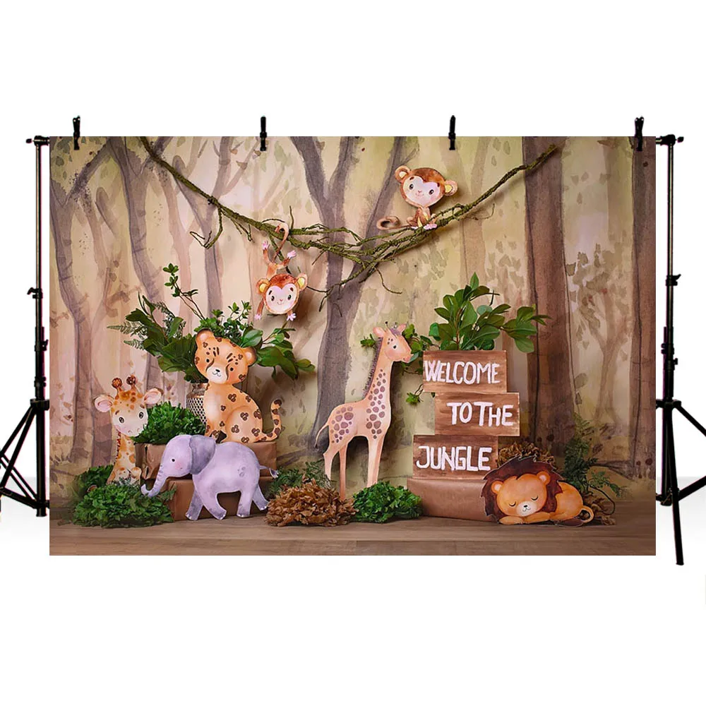 Avezano дикий фон для фотосъемки с изображением леса джунглей животных зеленых растений торта разбиваемый фон для фотостудии