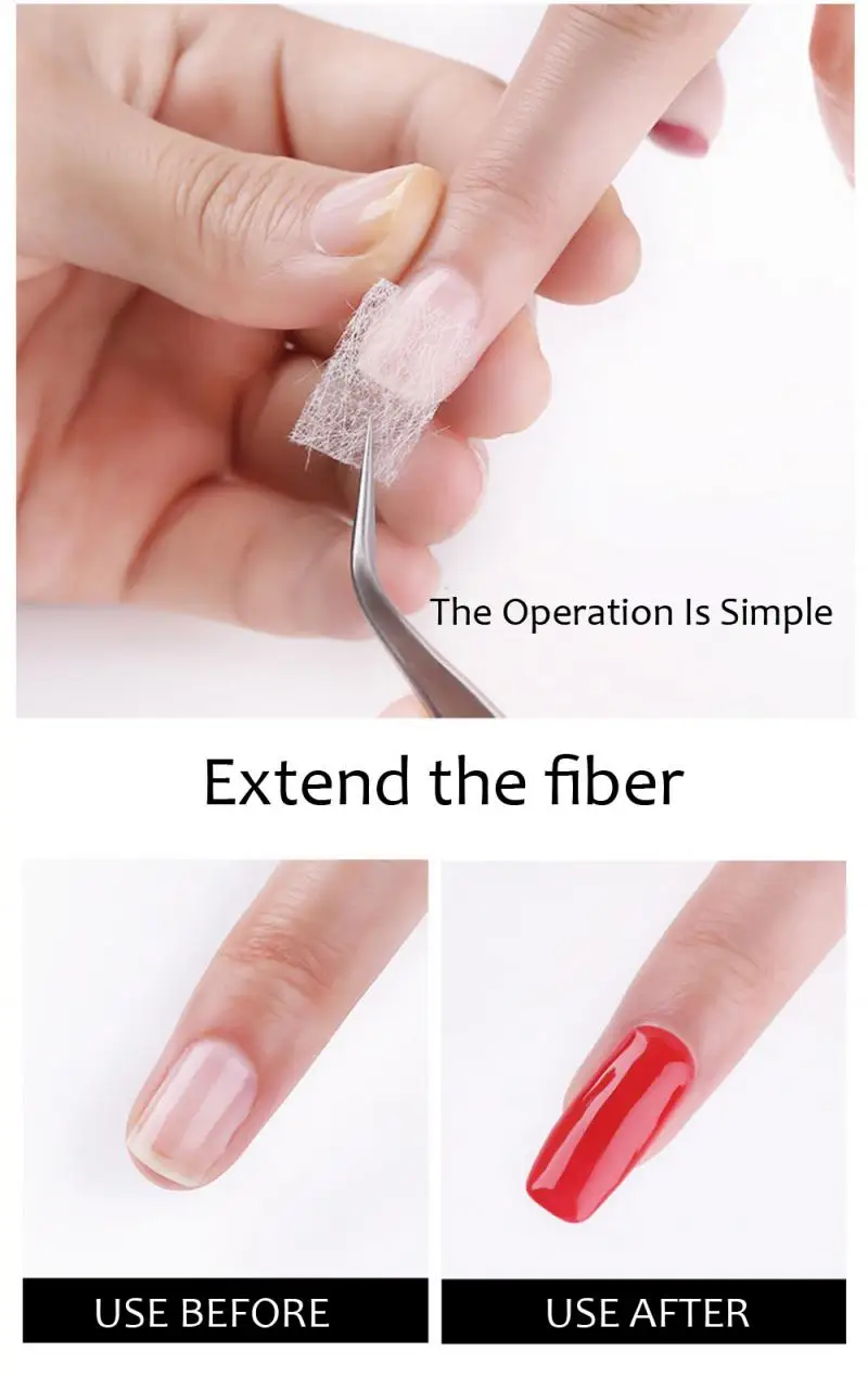 2. Нанесите базовое пальто. Перед высыханием основного покрытия Положите стекловолокно на поверхность ногтей и высушите.