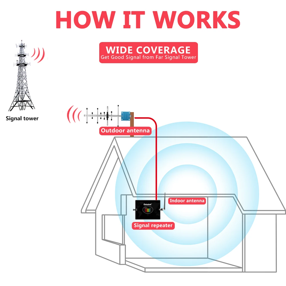 Усилитель сигнала Lintratek, двухдиапазонный, 2G, 3G, 4G, GSM, UMTS, LTE, ретранслятор, 900 МГц, 1800 МГц, 2100 МГц, полный комплект
