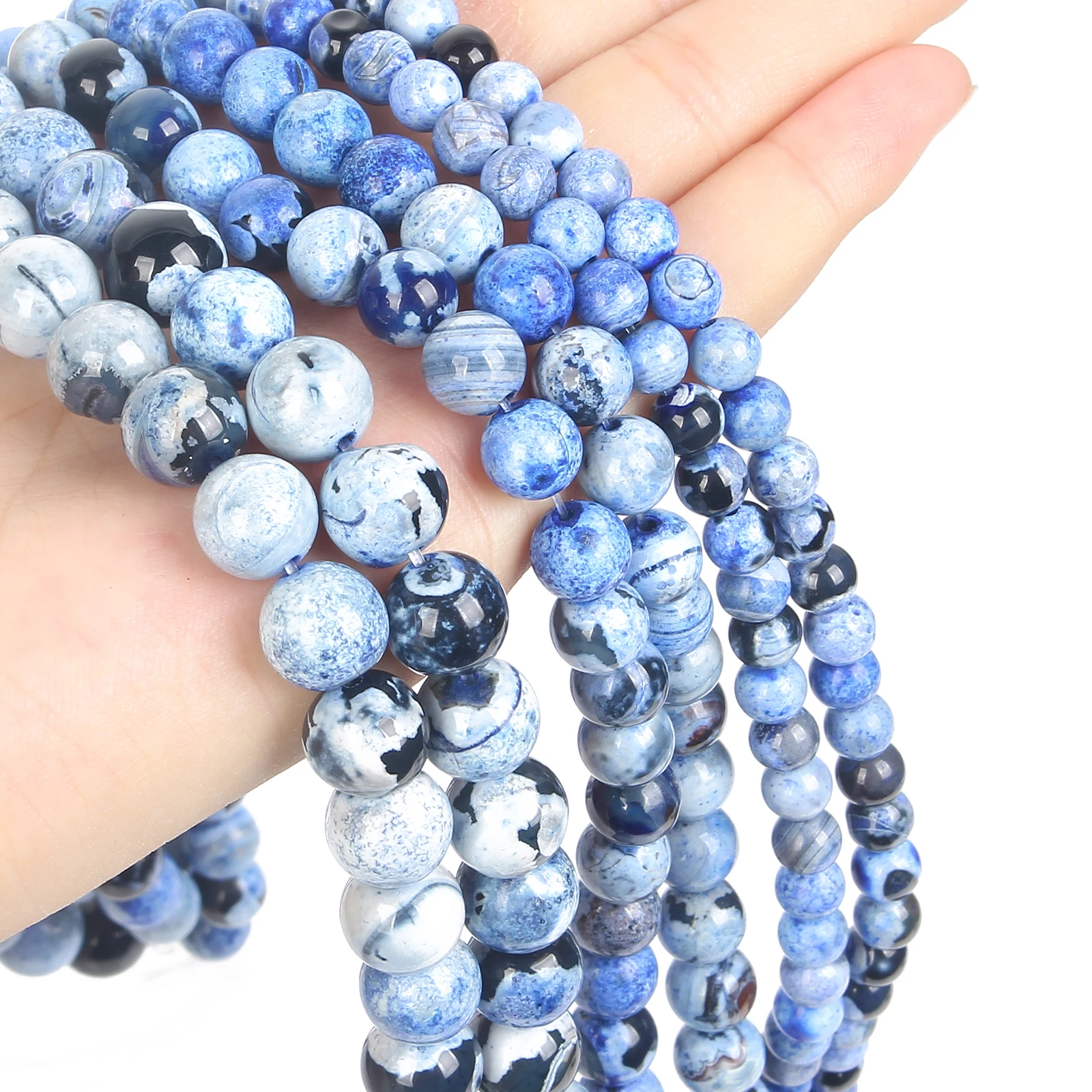 Бусины из натурального камня, синие Бусины Sardonyx из агата, кругл...
