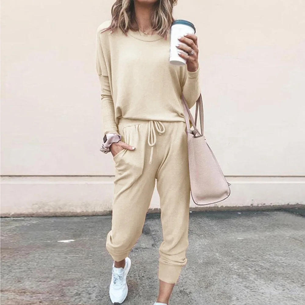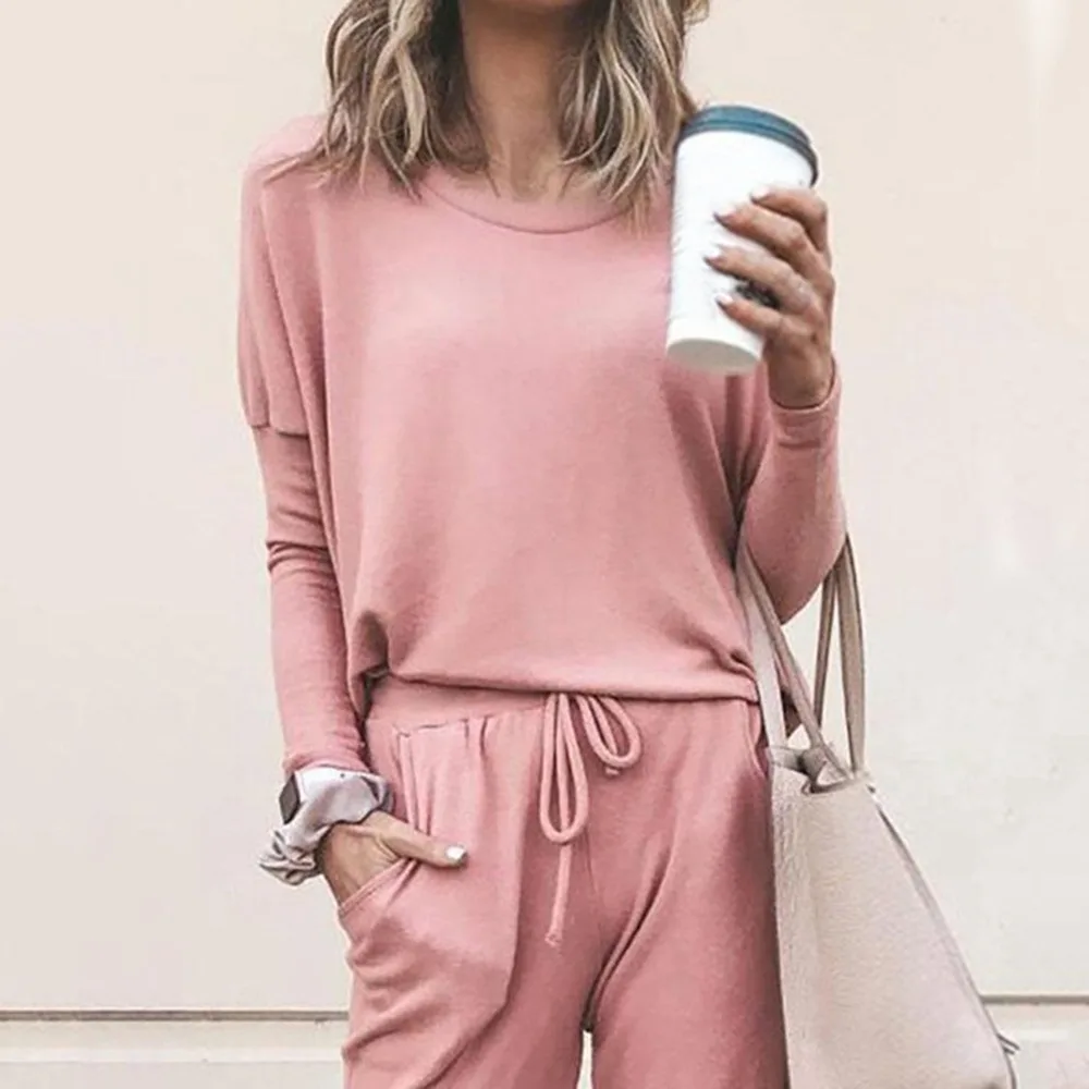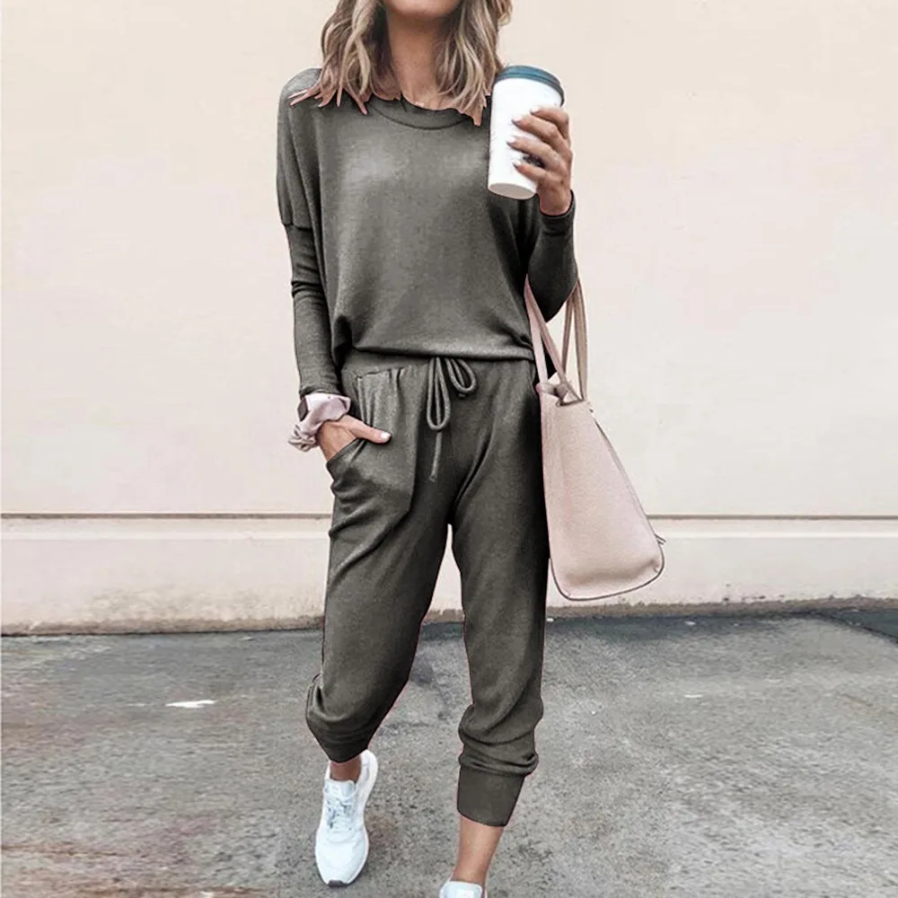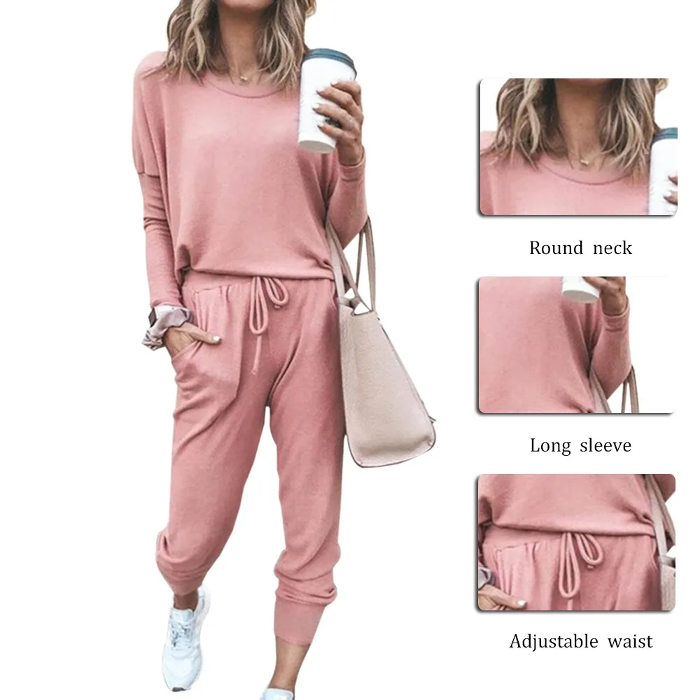 Женский спортивный костюм с длинным рукавом, мягкий свободный спортивный костюм для тренировок, комплект из 2 предметов, 2021