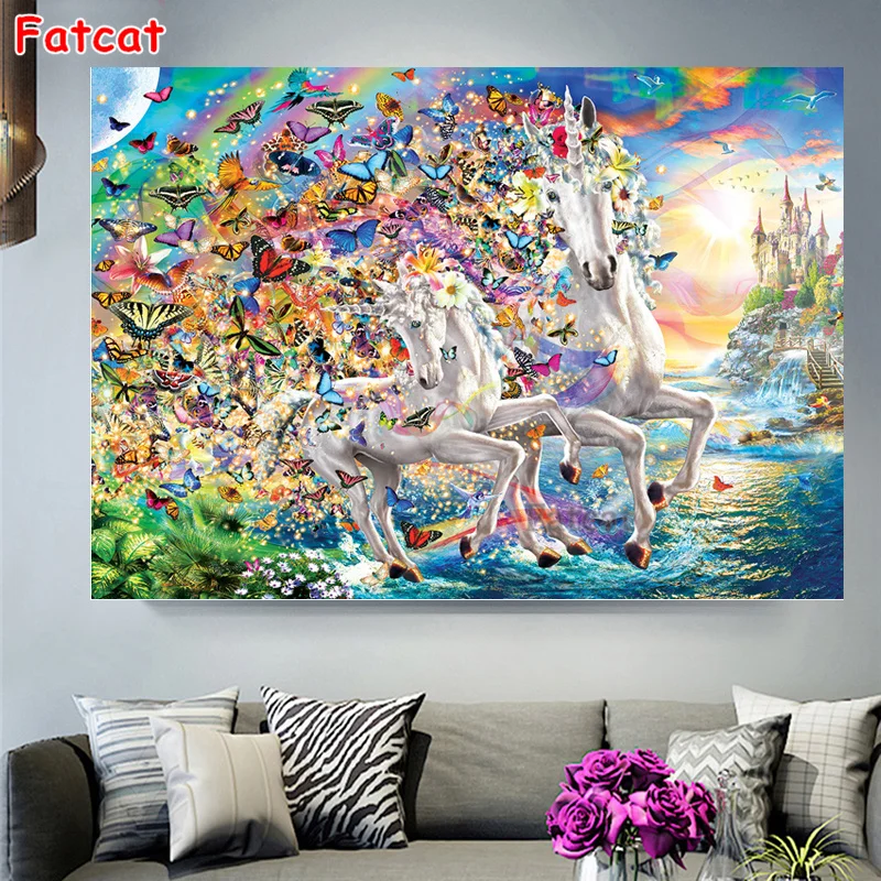 Алмазная вышивка с квадратными стразами, 5D Вышивка крестиком, единорог, фантазия стразы, мозаика, домашний декор, подарок PP2477