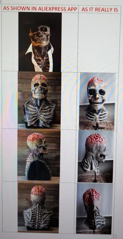 nit like the pictures.. way smaller. it doesn't cover the chest like un the picture. cannot move the mouth.