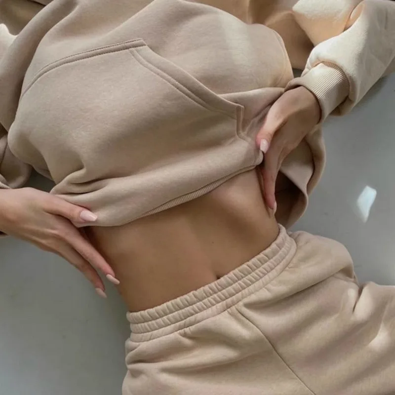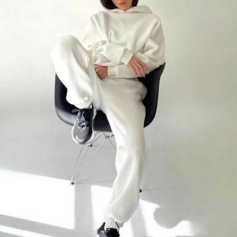 Женские Элегантные однотонные комплекты для женщин, теплые толстовки с капюшоном и длинные штаны, модные комплекты из двух предметов, женский спортивный костюм, осень 2021