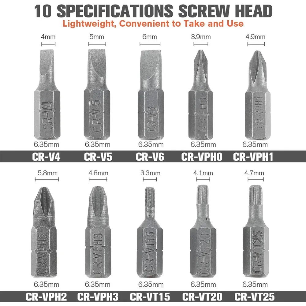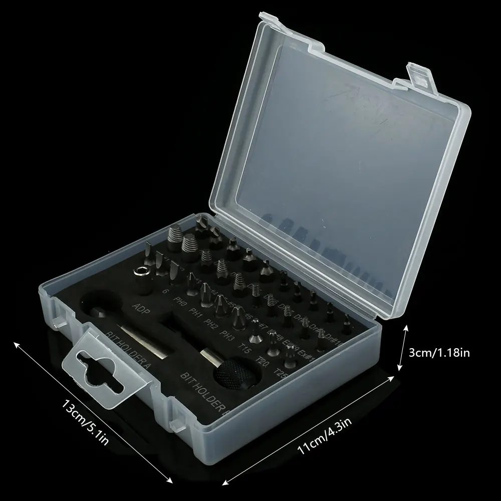 Материал: сталь S2 Цвет: серебристый Модель сверла: Dr #1, Dr #2, Dr #3, Dr #4, Dr #5, Dr #6, Dr #7, Dr #8, Dr #9, dr #10 Модель экстрактора винтов: Ex #1, Ex #2, Ex #3, Ex #4, Ex #5, Ex #6, Ex #7, Ex #8, Ex #9, ex #10 Отвертка Phillips Модель: PH0, PH1, PH2, PH3 Шестигранная Отвертка Модель: T15H, T20H, T25H Модель отвертки с плоской головкой: 4, 5, 6 Количество: 33 шт.